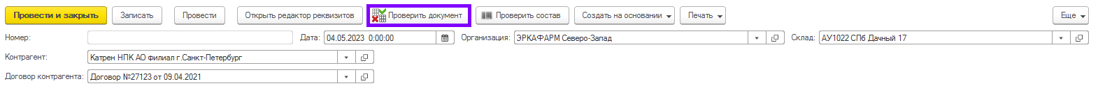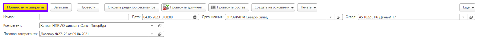 После внесения и проверки сумм документа нажмите на кнопку «Провести и закрыть».