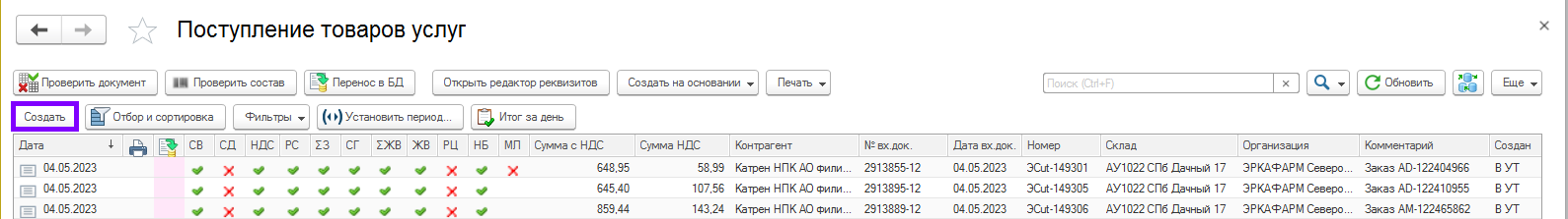 Если поставщик не обязан предоставлять счёт фактуру, необходимо поставить галочку «V» в ячейке «Нет счет-фактуры».