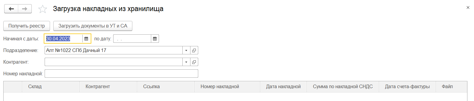 Если в журнале в списке накладных нет нужного документа, можно вручную подгрузить накладные.