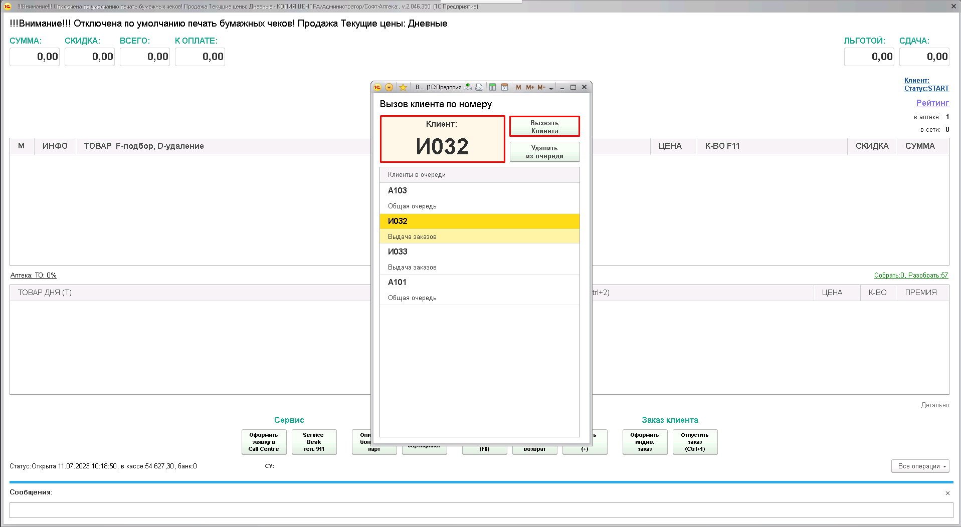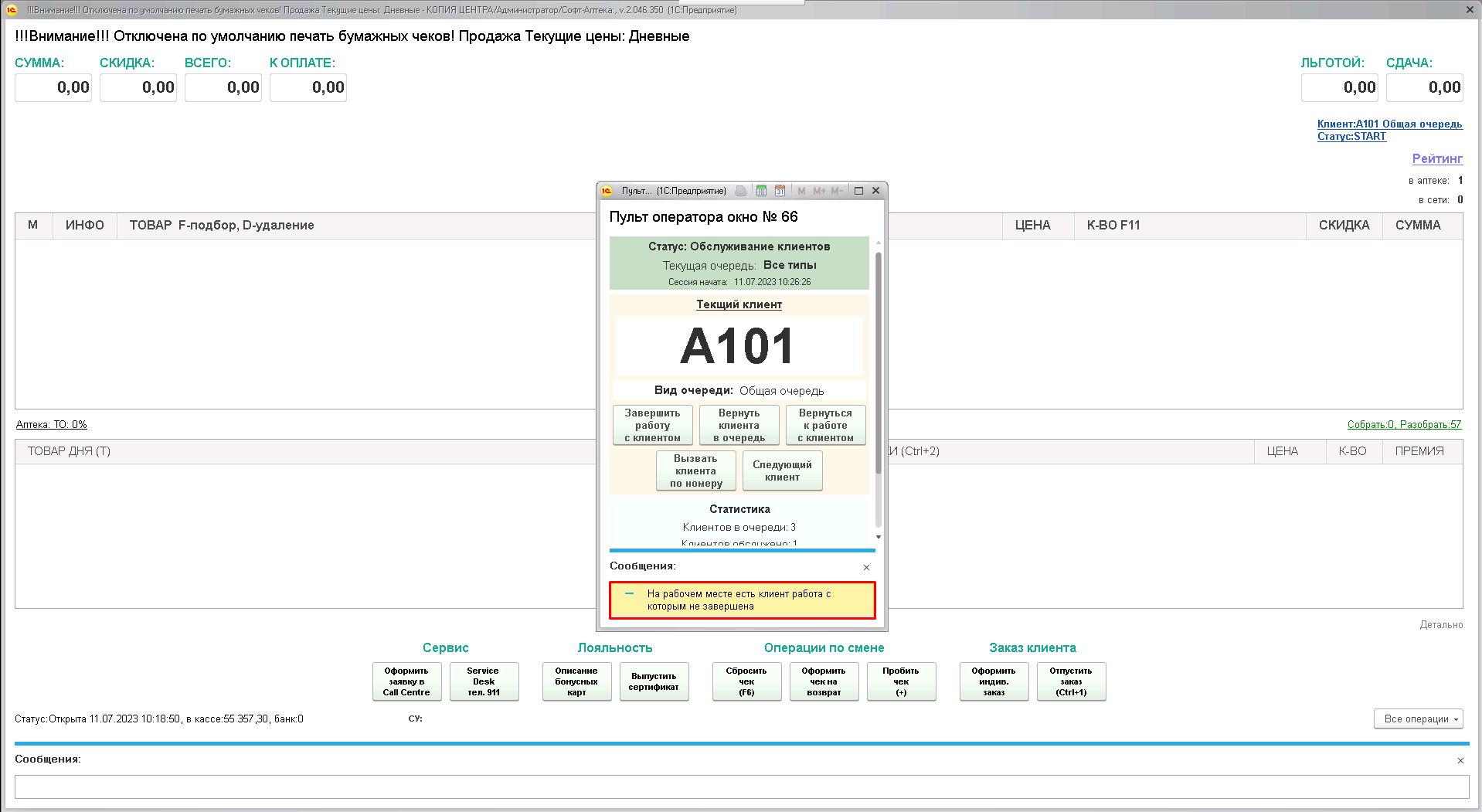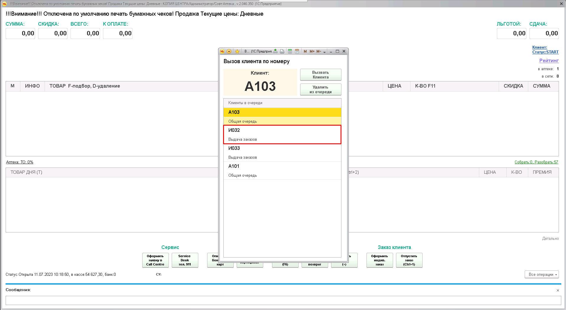 - Программа обратит ваше внимание на последнего вызванного, но не обслуженного клиента.