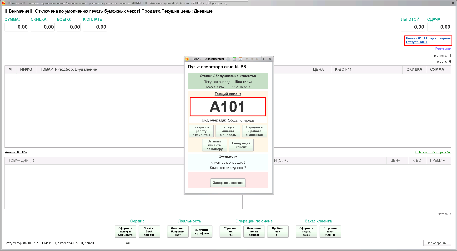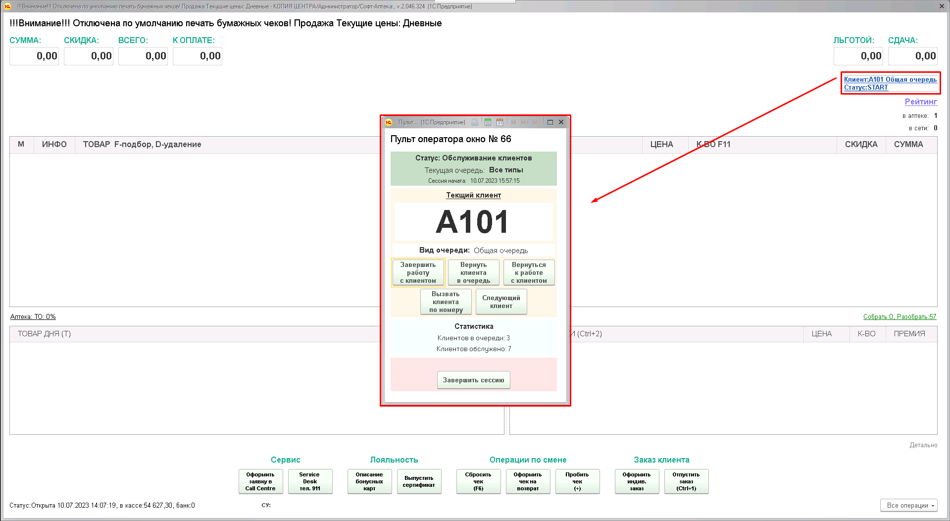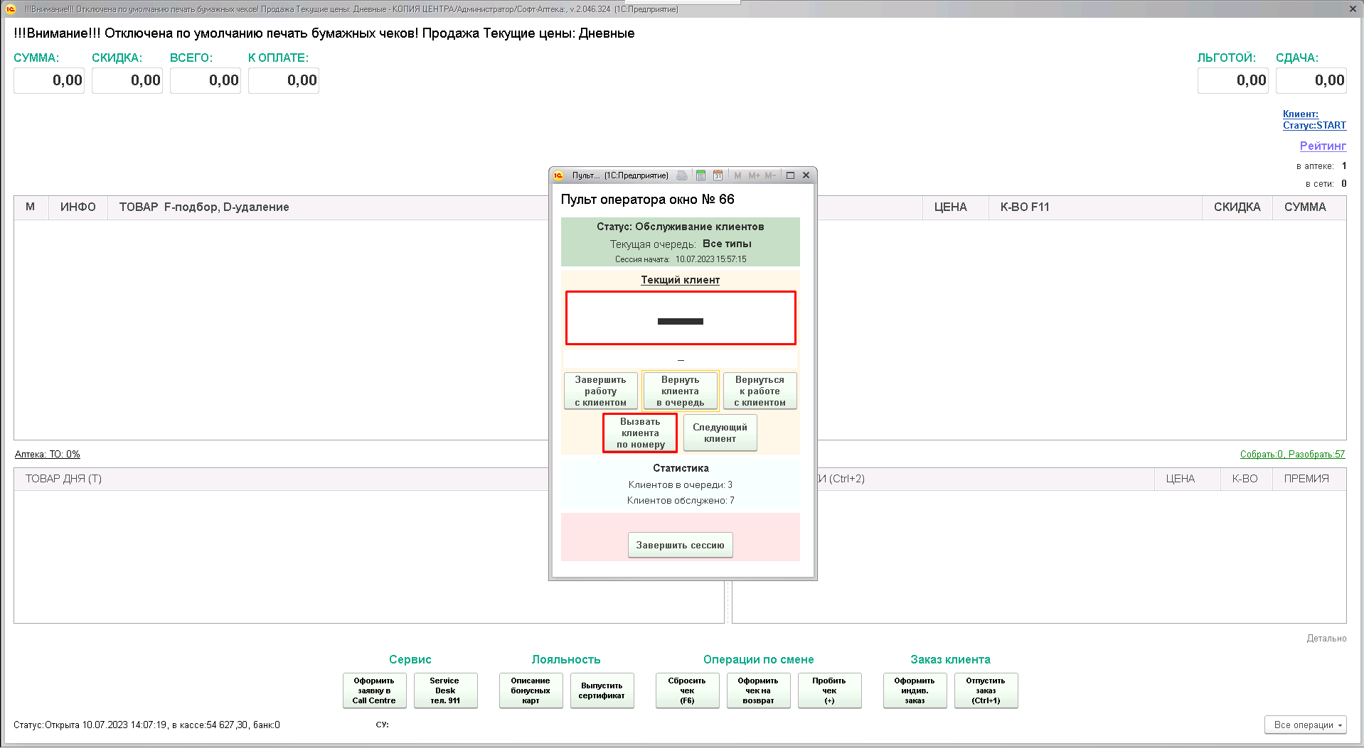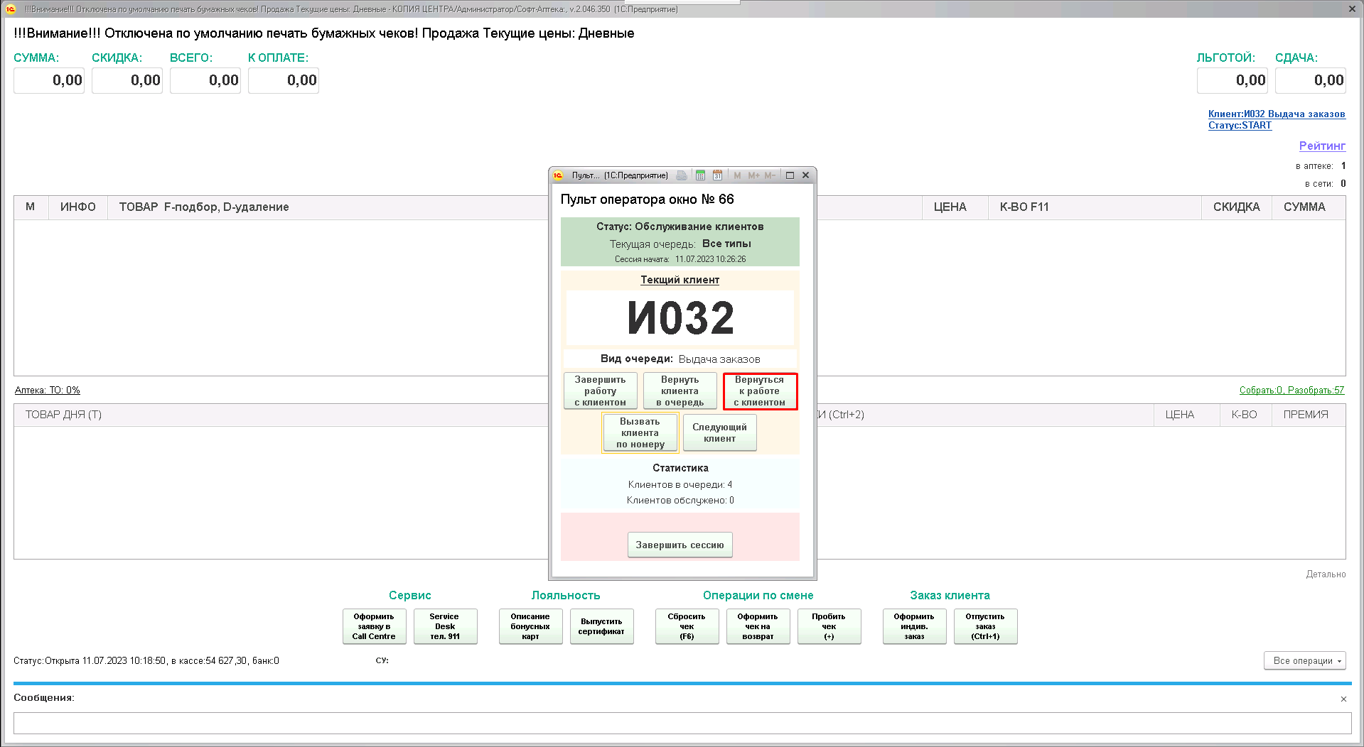 - Программа обратит ваше внимание на последнего вызванного, но не обслуженного клиента.