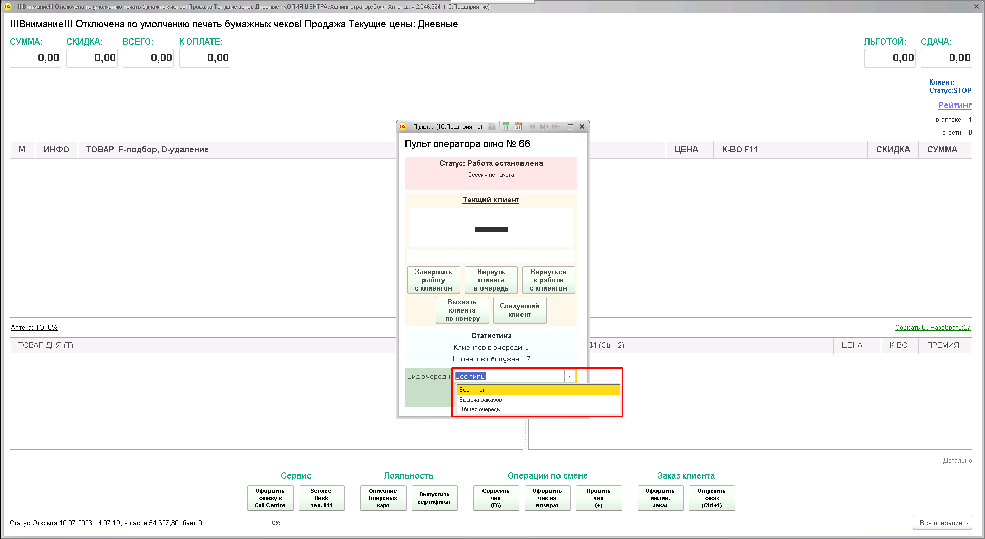 - Общая очередь – касса обслуживает клиентов общей очереди, кроме клиентов с заказами