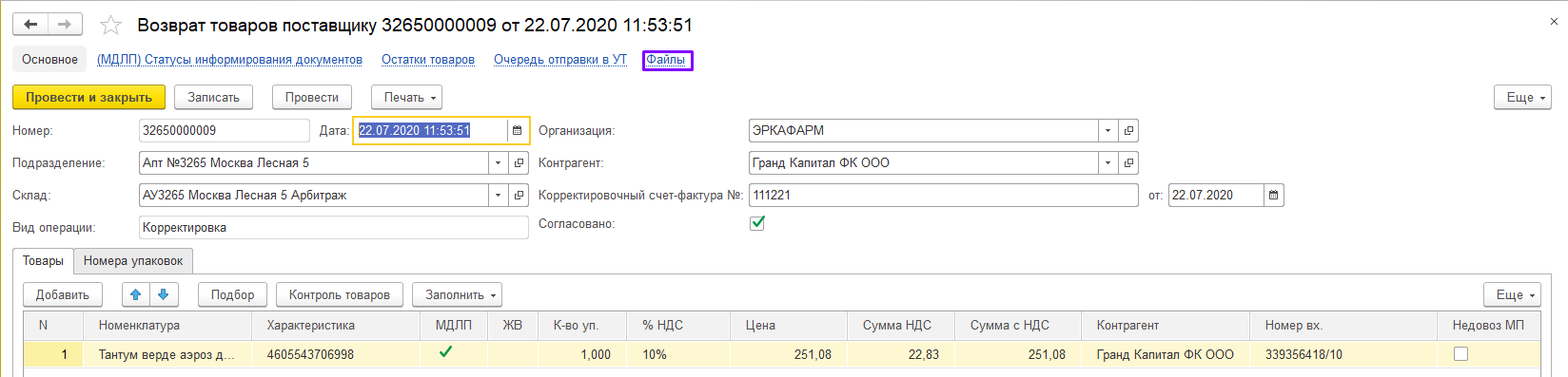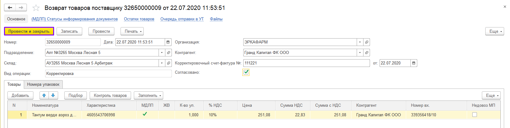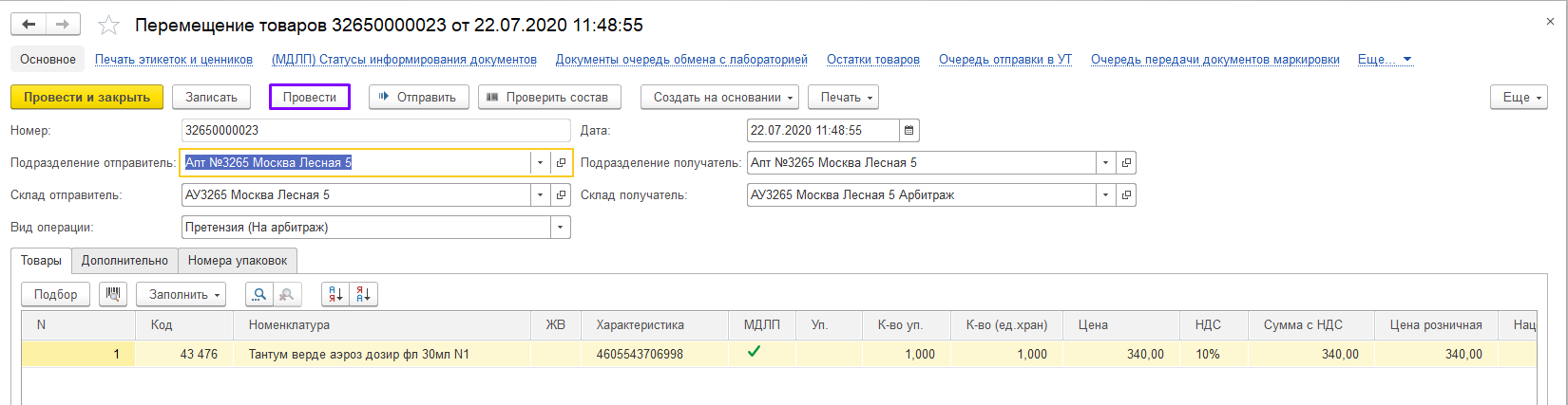Проведите документ, нажав кнопку «Провести».
