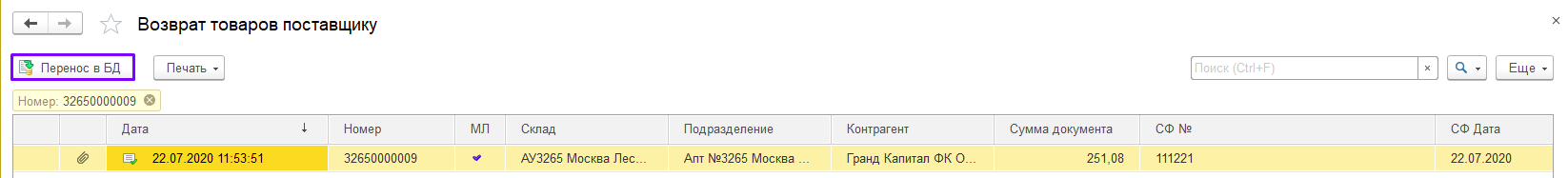 Спишите товаров с остатков аптеки, нажав «Перенос в БД».