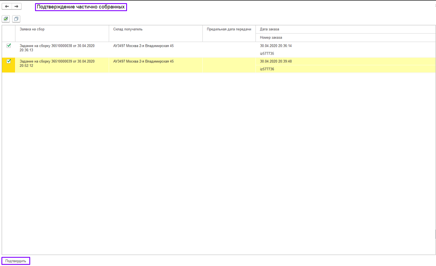 3. «Собран частично» - статус присваивается в случае, если не весть товар по заданию был фактически найден (пересорт, брак, бой).