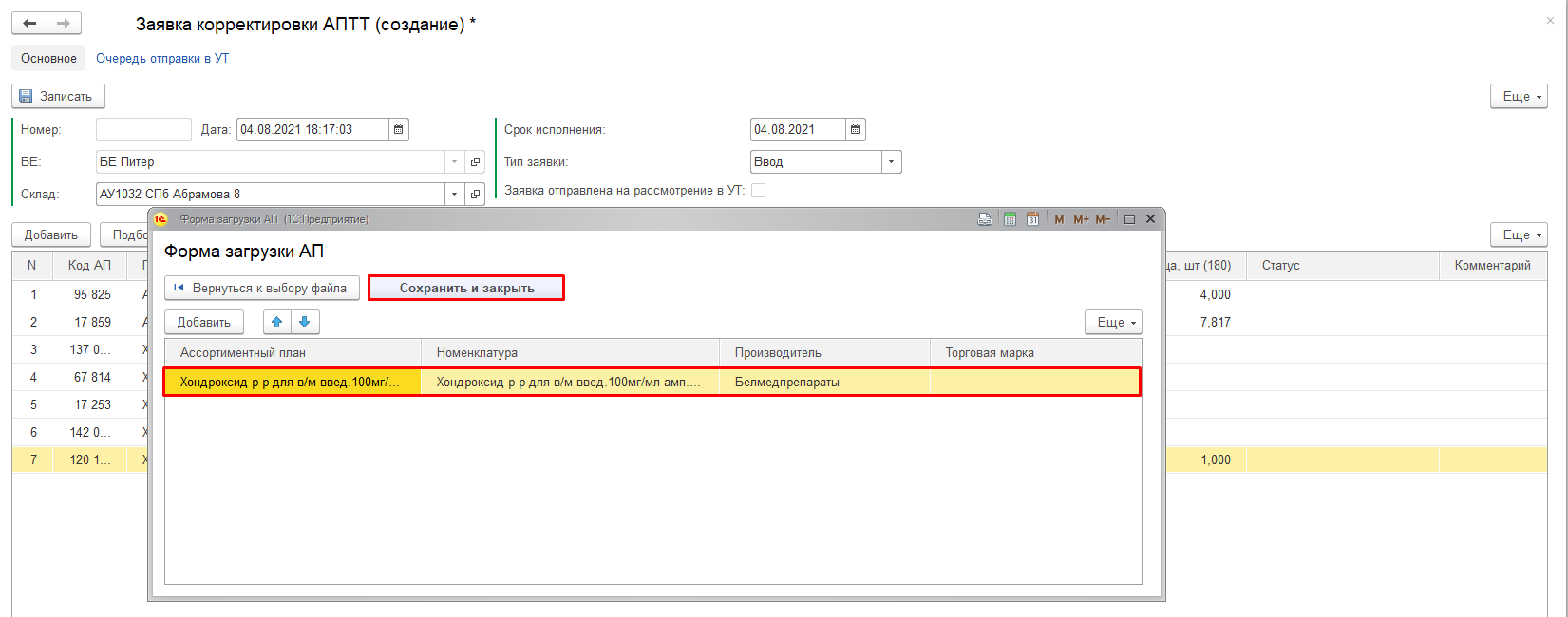 После того как заполненные вами данные сопоставятся с данными в 1С, нажмите кнопку «Сохранить и закрыть».