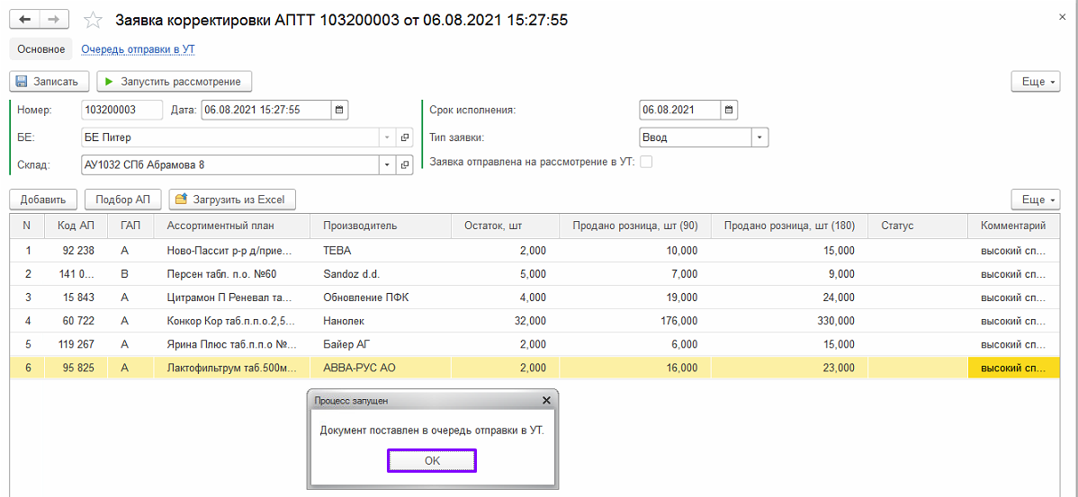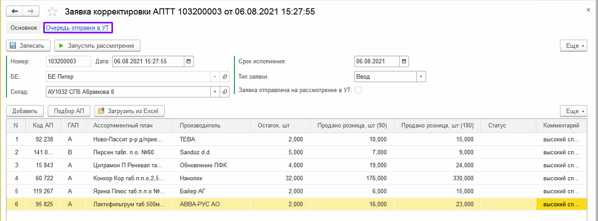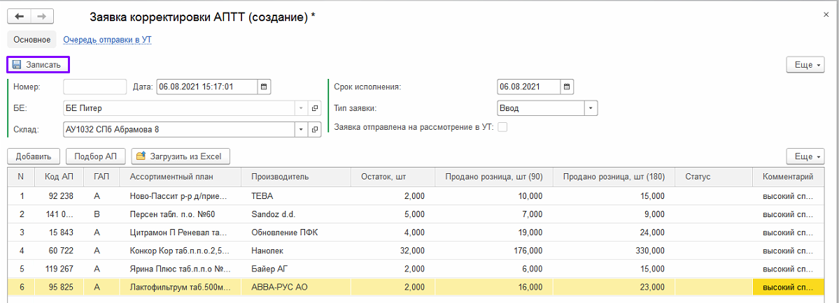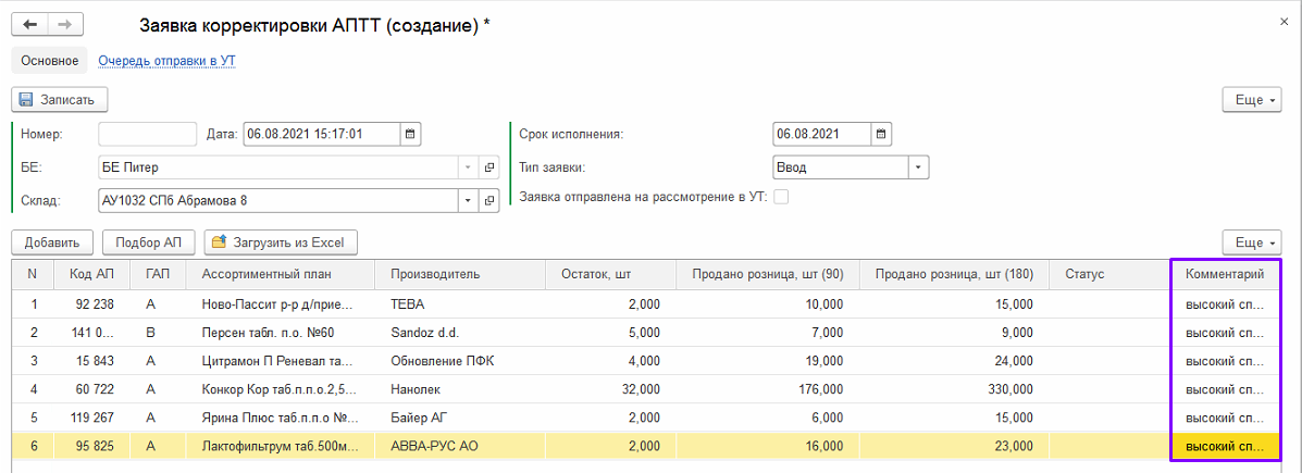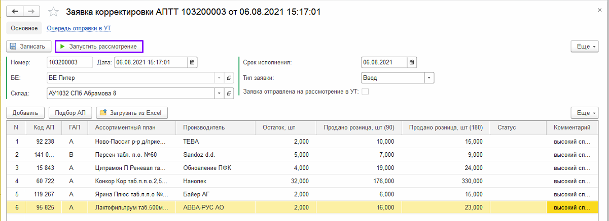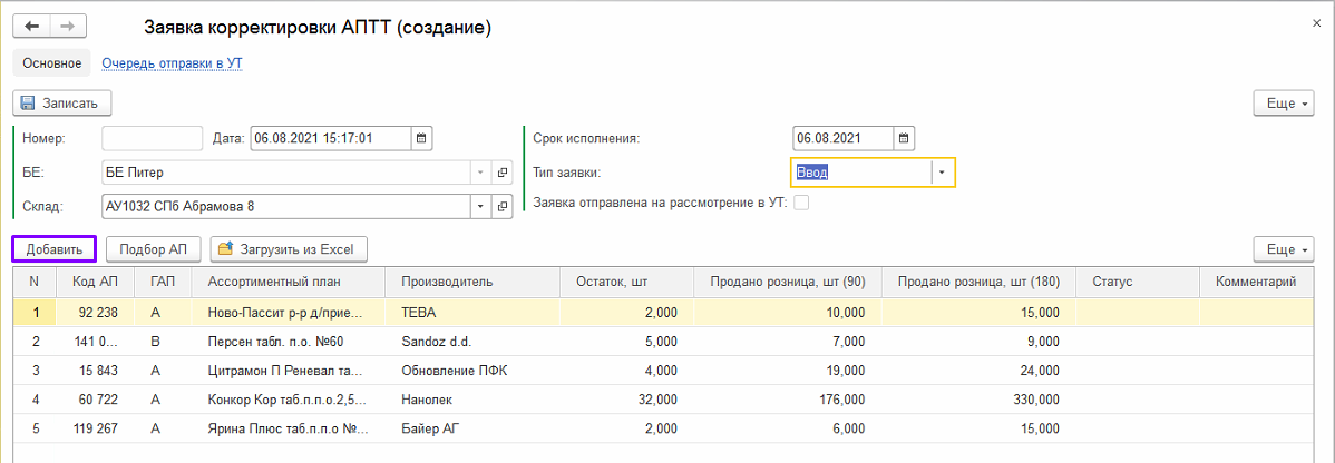• Вводв случае, если данная позиция не входит в ассортиментный план аптеки, но пользуется большим спросом.
