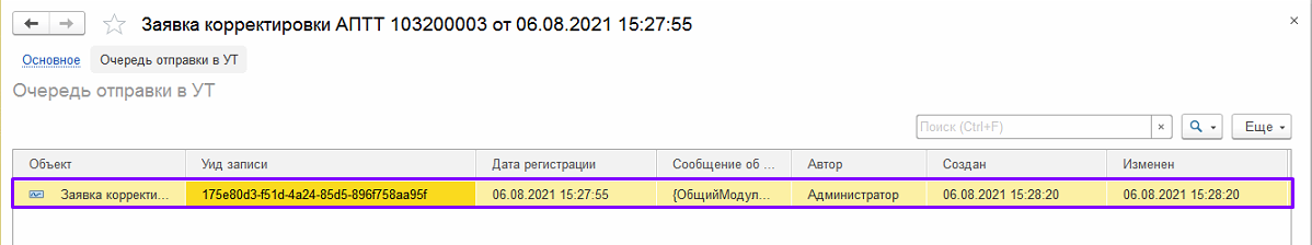 8. Постановку в очередь документа, можно проверить по ссылке «Очередь отправки в УТ».