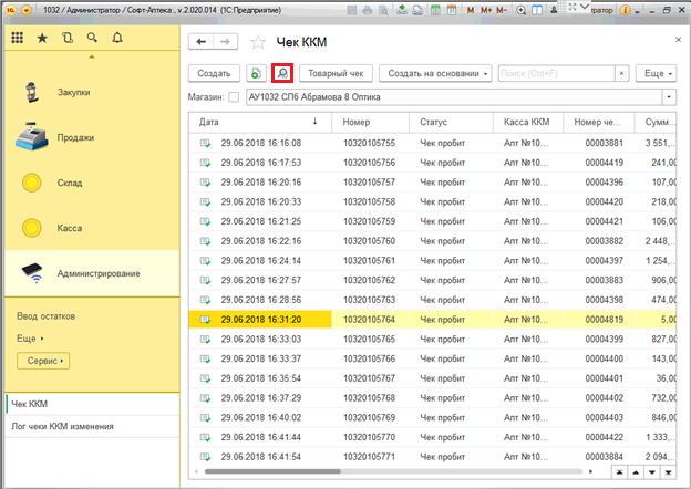 2. При необходимости, для проверки правильности внесенных Вами данных, выделите чек или зайдите внутрь чека и нажмите на значок