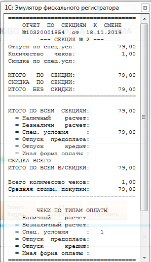 В отчете по секциям можно увидеть суммы продаж через спецусловия: