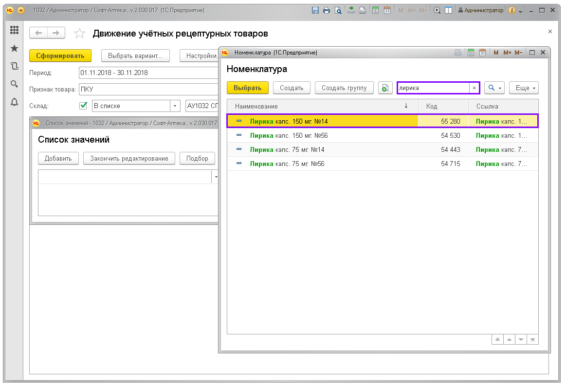 13. Введите наименование. Далее выберите необходимую номенклатуру из предложенного списка, кликнув по нужной строке дважды левой кнопкой мыши.