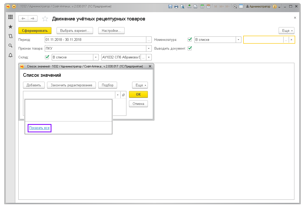 8. Для перехода в список номенклатур нажмите «Показать все».