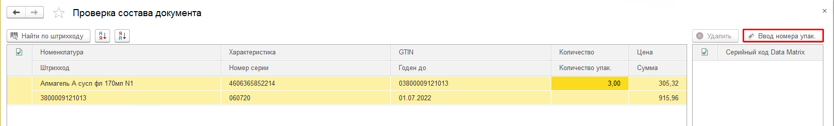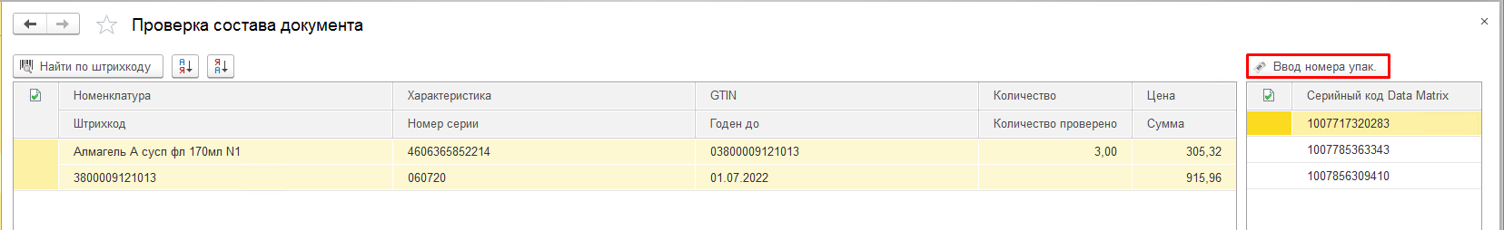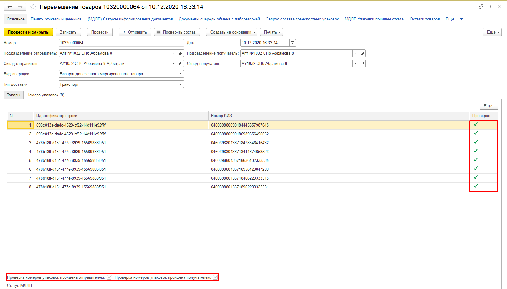 Можно убедиться в правильности проверки открыв вкладку «Номера упаковок».