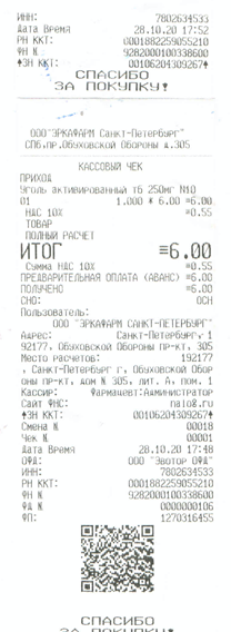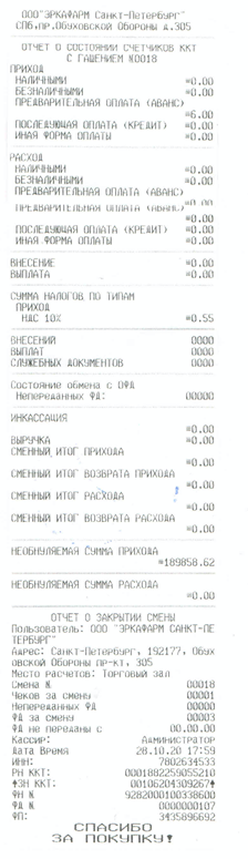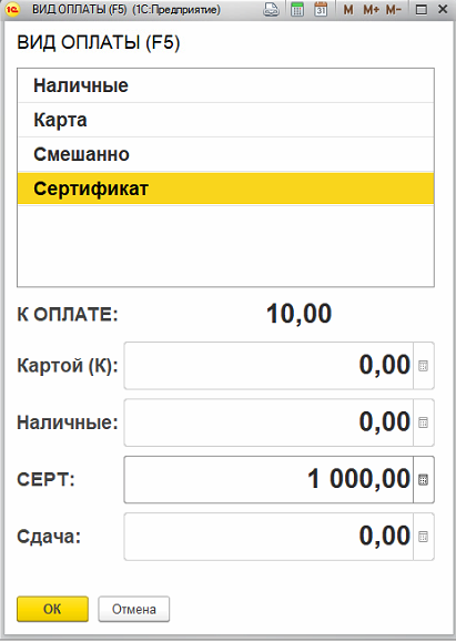 3. Далее нажимаем кнопку «ОК» и пробиваем чек. Сертификат «списывается», перед пробитием чека отправляется запрос в центр, чтобы записать остатки и статусы по сертификату. Если обращение не удалось, сертификаты не списываются, чек не пробивается.