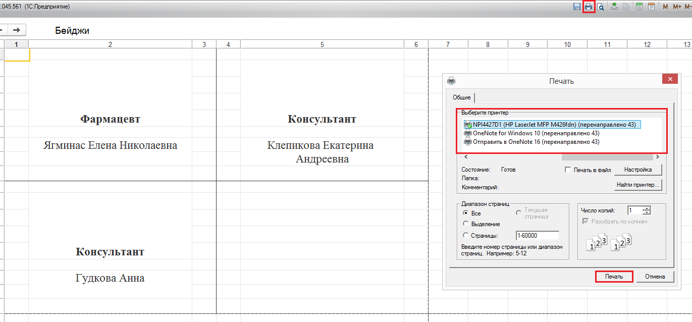 Информация по должности появится в списке печатей бейджей. Для вывода на печать нажмите кнопку «Печать».