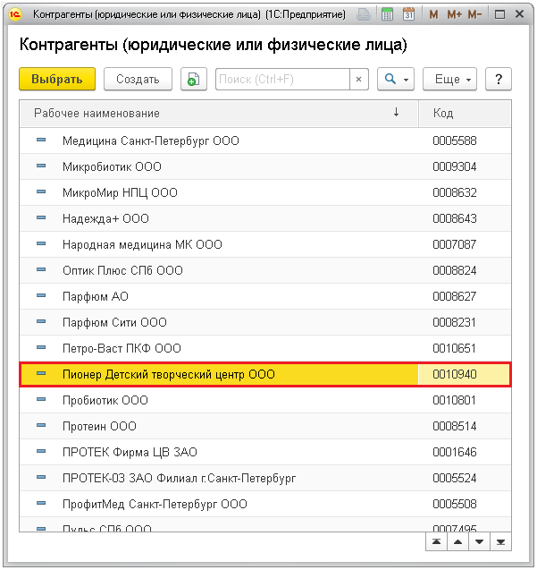 В открывшемся списке дважды кликните мышкой по необходимому контрагенту.