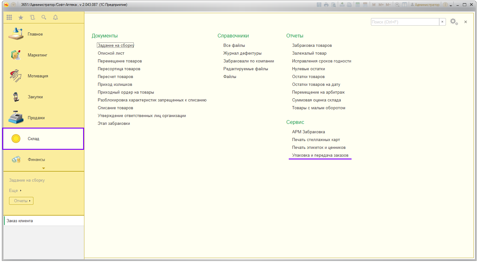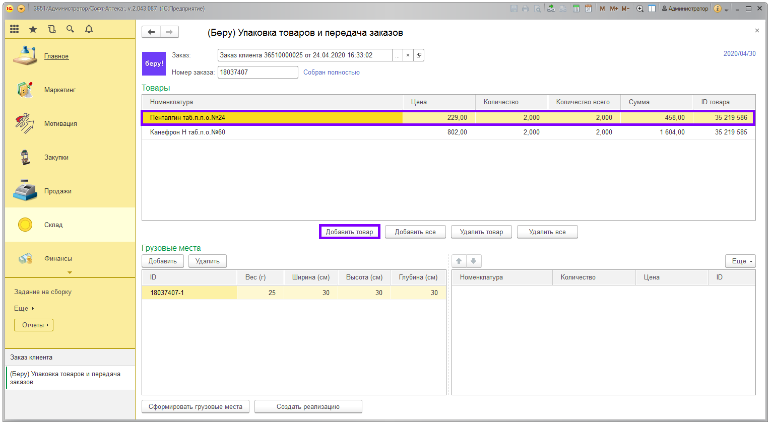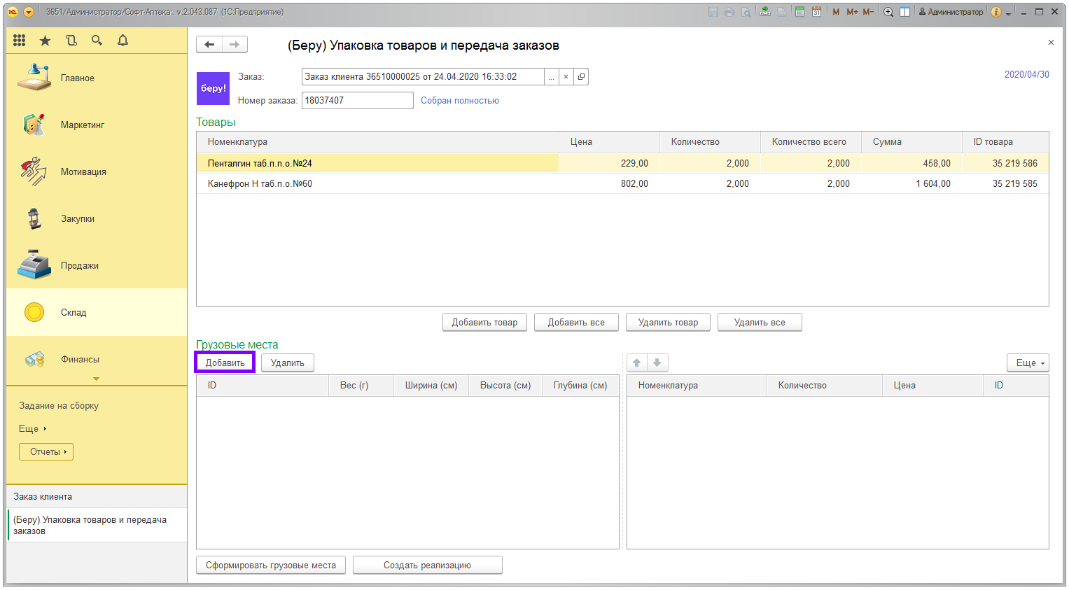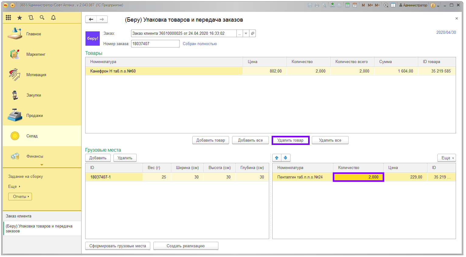 Сборка заказов на доставку службой Беру в ИС Софт-Аптека
