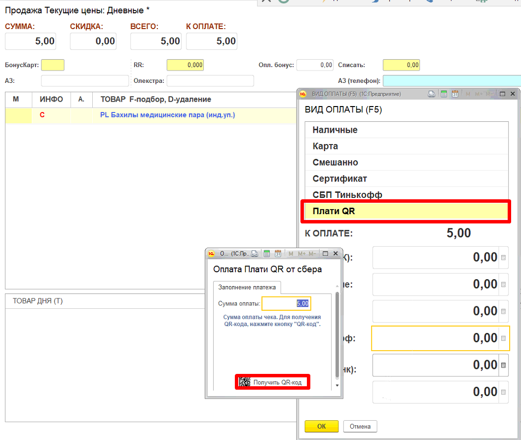 Оплата через Плати QR в ИС Софт-Аптека