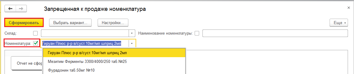 Отчёт "Запрещенная к продаже номенклатура" в ИС Софт-Аптеке